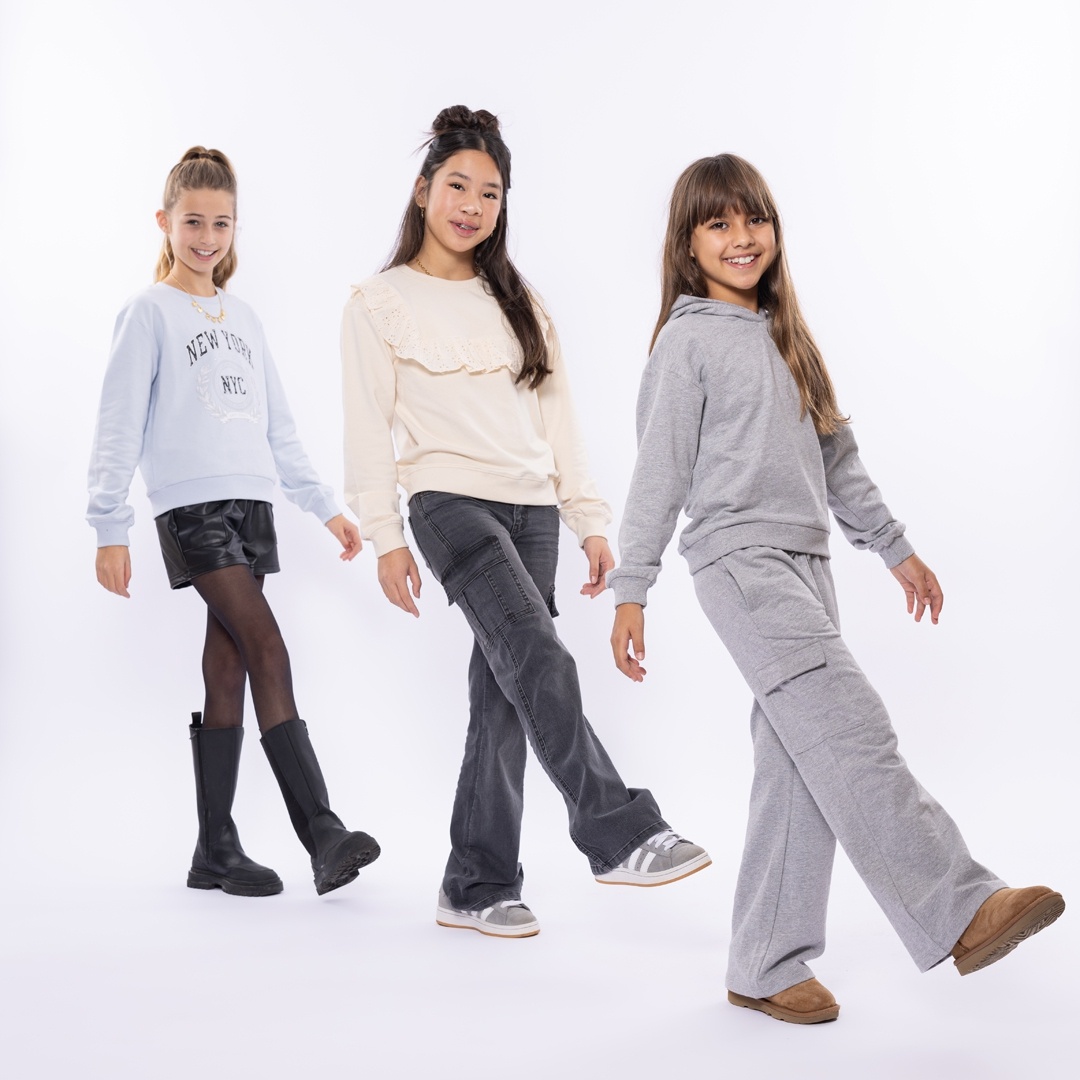 No Way Monday Mädchen-Jogginghose weit geschnitten grau meliert