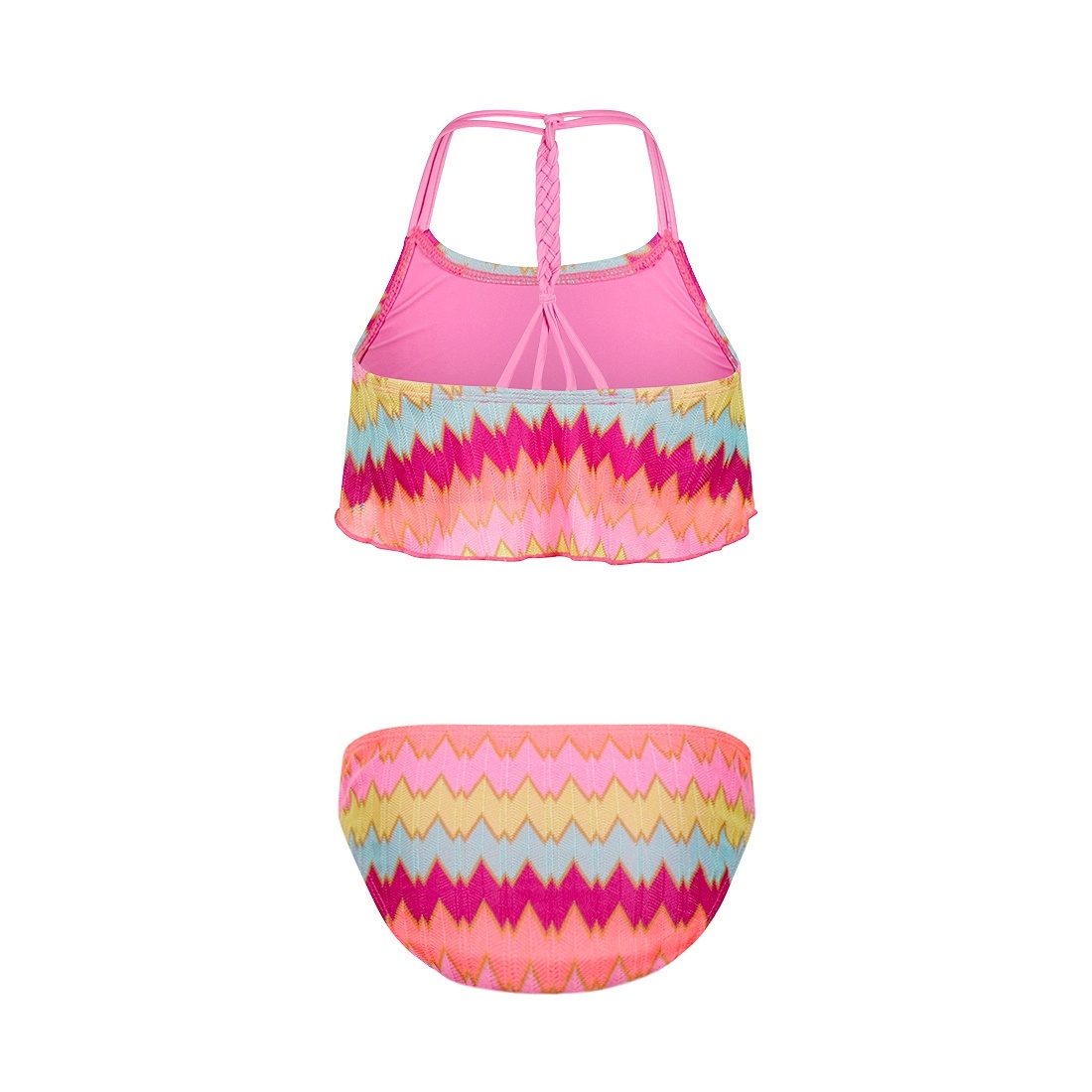 Ready for the beach, pool or water fun in the garden? The No Way Monday bikini with multicoloured zigzag print brings colour to every warm day. The combination of bright colours and graphic print makes it a real eye-catcher. This bikini for girls feels soft, dries quickly and moves comfortably with you. The top is light and comfortable, while the bottoms fit neatly so you can dive, splash and relax without a care.