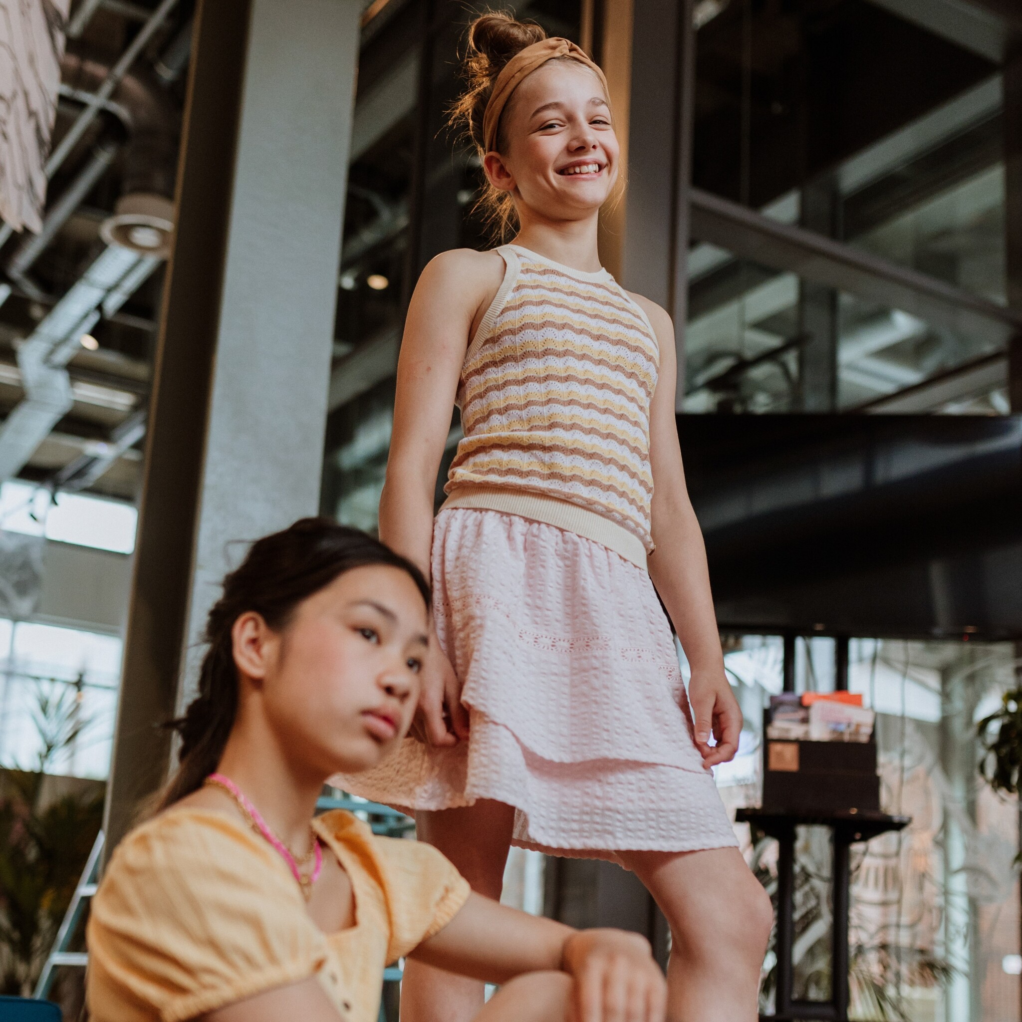 Complete your outfit with this cheerful light pink skirt! The No Way Monday skirt has two layers of fabric and is decorated with a beautiful embroidered detail, creating a playful and unique look. The texture in the fabric makes the girls' skirt extra special. Pair it with a matching blouse or your favourite No Way Monday T-shirt for a fresh, fashionable look.