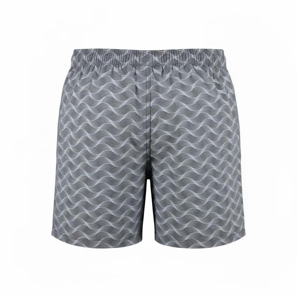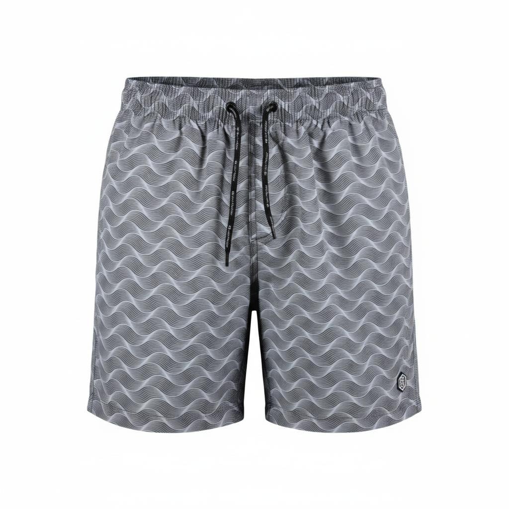 No Way Monday heren zwemshort bestaande uit een mid length model met een all-over grafisch golfpatroon in grijstinten, voorzien van een elastische tailleband met een trekkoord.