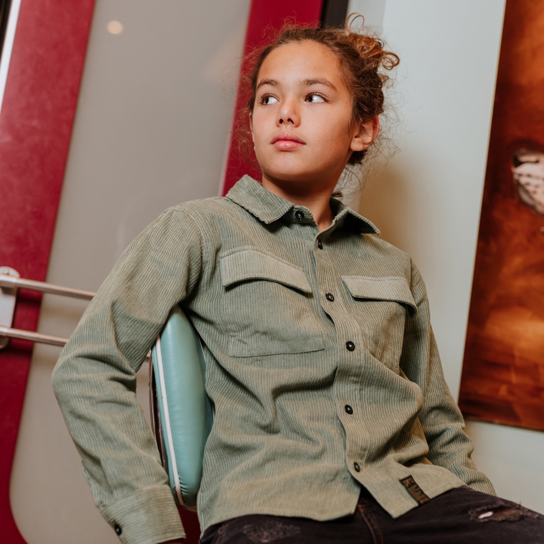 No Way Monday jongens blouse zachtgroen corduroy rib
