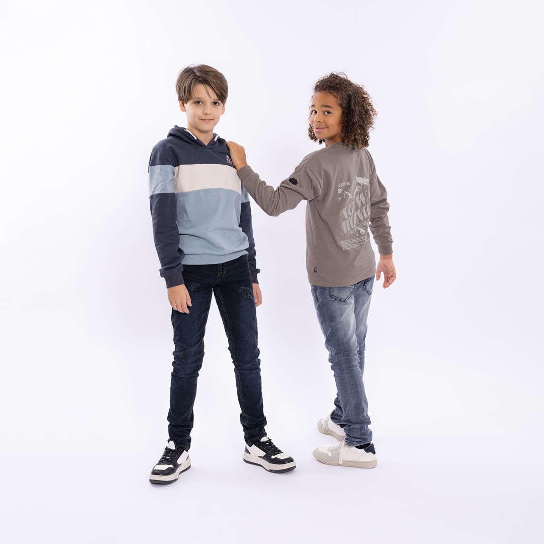 No Way Monday jongens hoodie antraciet lichtblauw capuchon