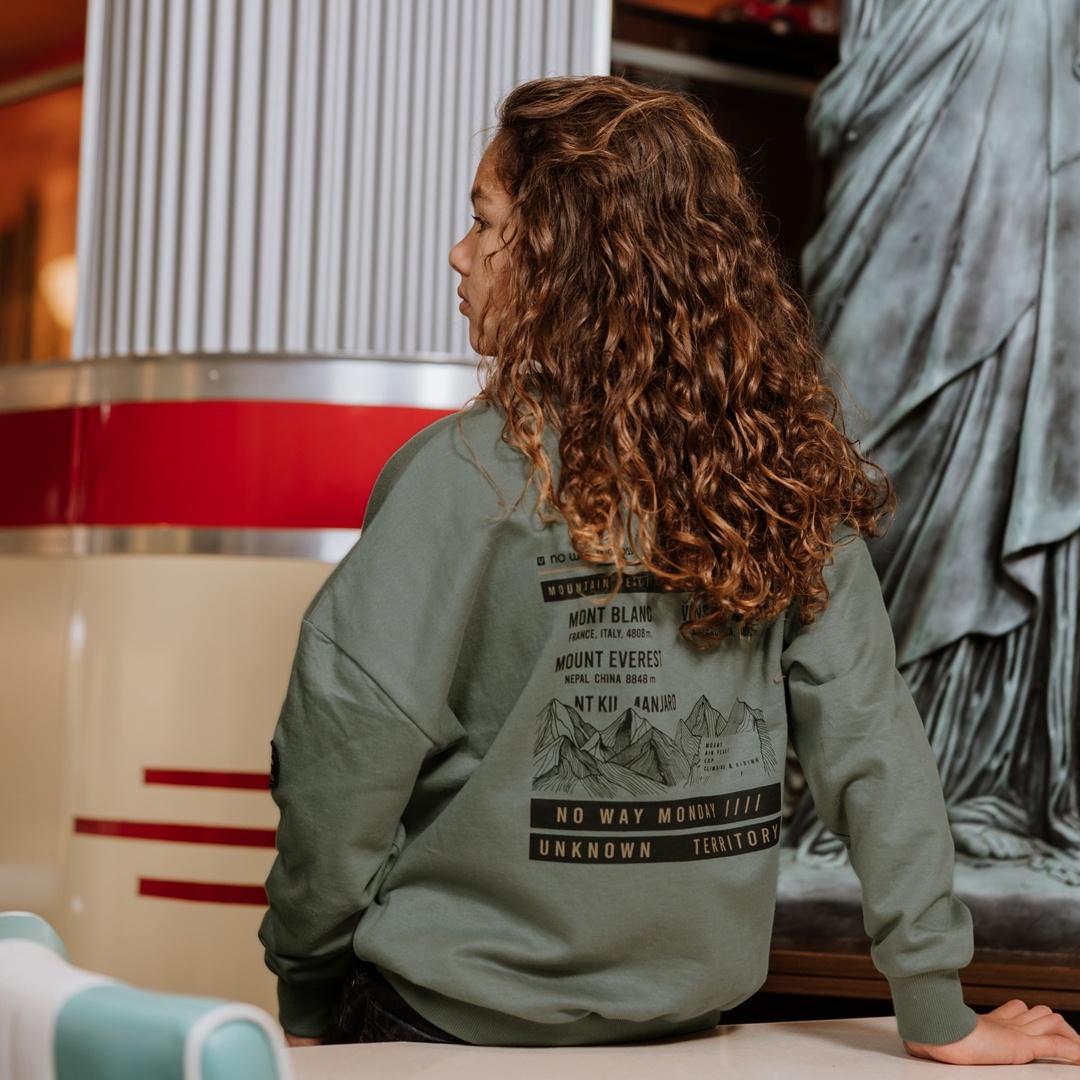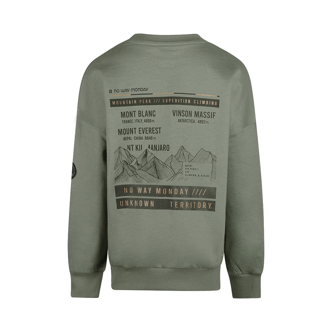 Een frisse toevoeging voor het najaar: deze No Way Monday jongens sweater in zachtgroen. De jongens trui heeft een comfortabele loose fit en is gemaakt om lekker in te relaxen. Op de voorkant vind je een subtiele opdruk, terwijl de achterkant juist verrast met een stoere print. Deze No Way Monday sweater is perfect voor kids die graag hun eigen stijl laten zien – elke dag van de week.