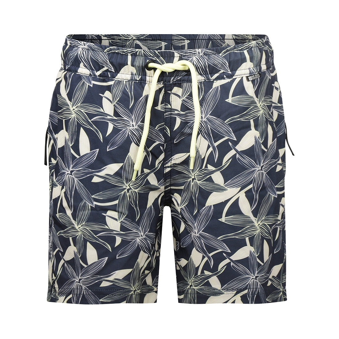 Met de No Way Monday zwemshorts in donkerblauw met wit kies je voor een zomerse en comfortabele look. De stof is zacht, sneldrogend en prettig om te dragen op warme dagen aan zee of bij het zwembad. De zwemshort voor jongens heeft een opvallende bloemenprint en kan perfect gecombineerd worden met de heren zwemshort voor een matching papa en zoon outfit.