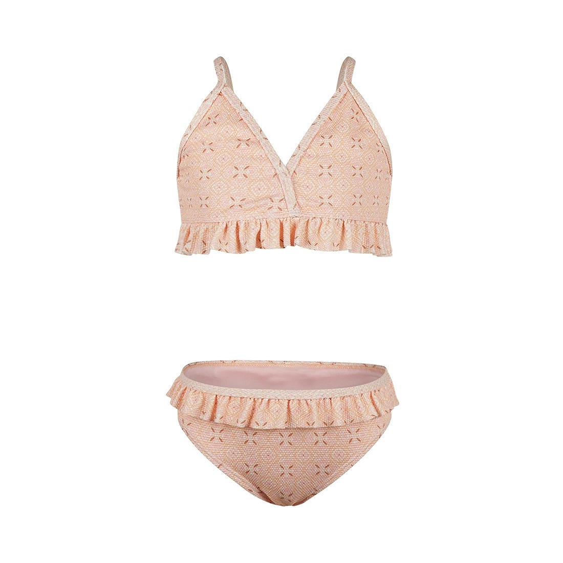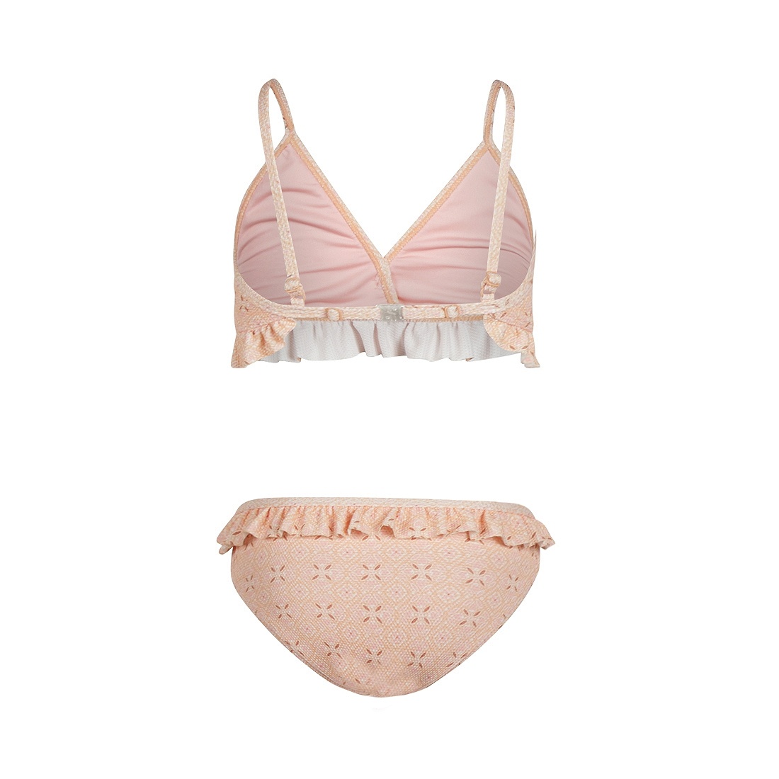 Zomerpret in de No Way Monday bikinitop! Deze vrolijke bikini in zacht oranje met een prachtig printje is perfect voor een dagje strand of bij het zwembad. Het haltertopje met spaghettibandjes is voorzien van vrolijke ruffles. De ruffles aan het broekje geeft een speelse twist aan deze zomerse must-have. Gemaakt van een zacht materiaal dat snel droogt en zacht aan voelt. Happy summer!