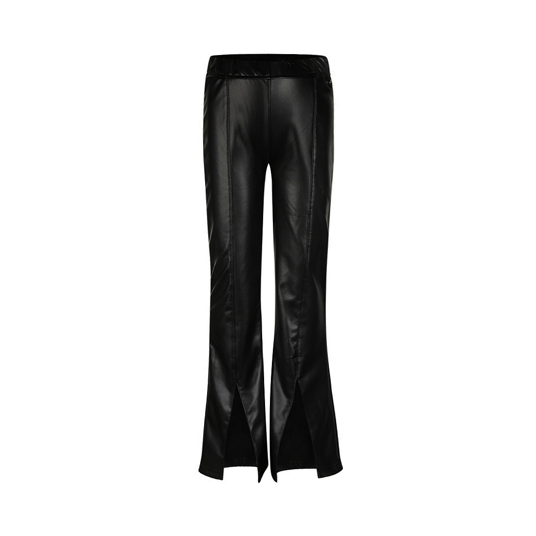 Deze No Way Monday kunstleer flared broek geeft elke outfit een stoere upgrade! Gemaakt van soepel PU leer en afgewerkt met een trendy deelnaad over het been. De zwarte meisjes broek met uitlopende pijpen heeft een leuk splitje aan de voorkant, wat zorgt voor een speels effect. Combineer hem met een oversized sweater of een strakke top voor een toffe look.