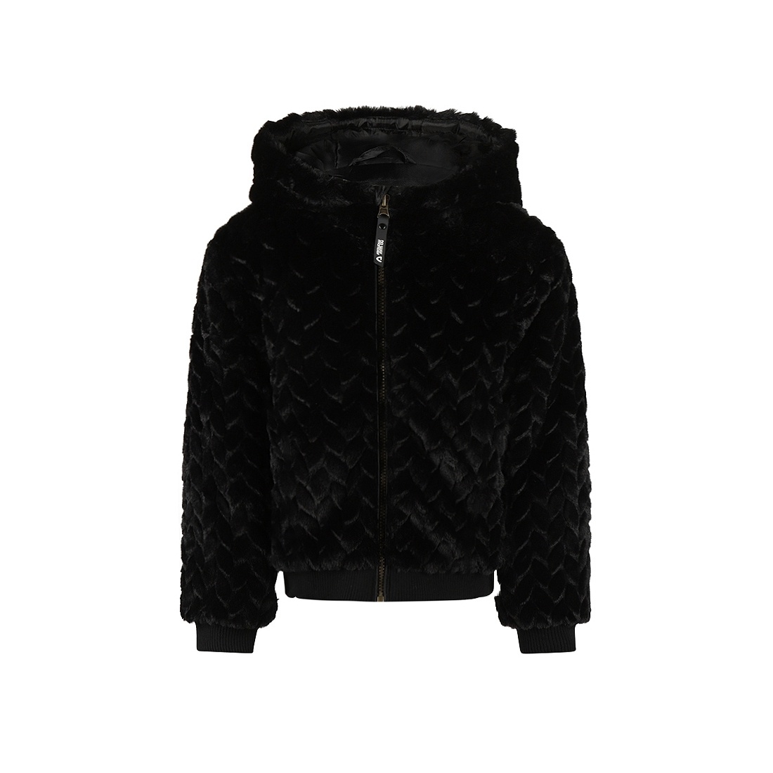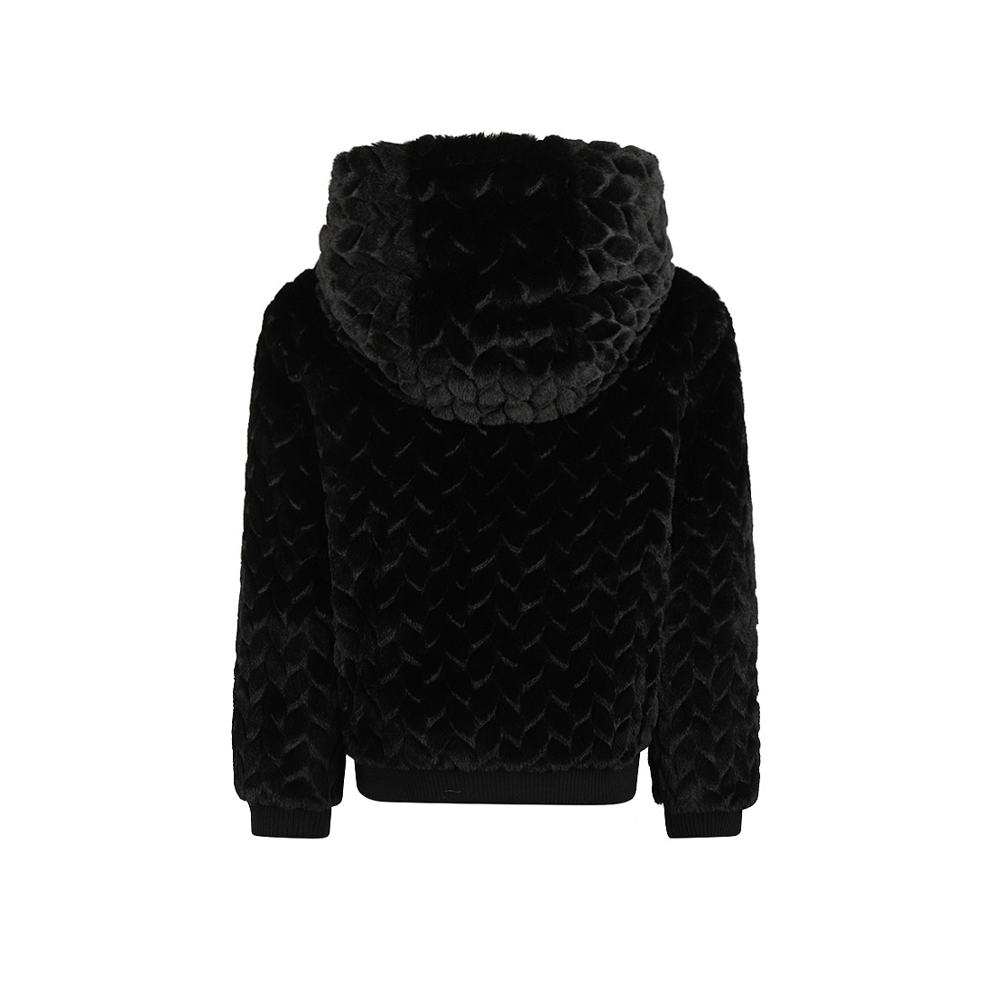 No Way Monday meisjes jack zwart imitatiebont capuchon