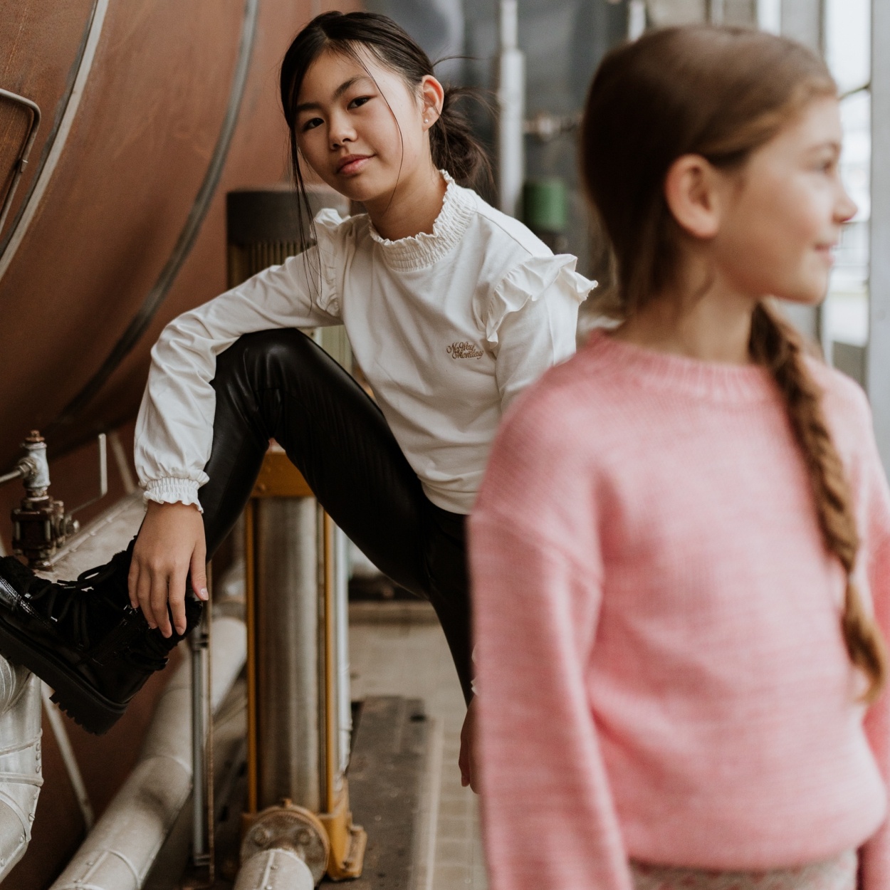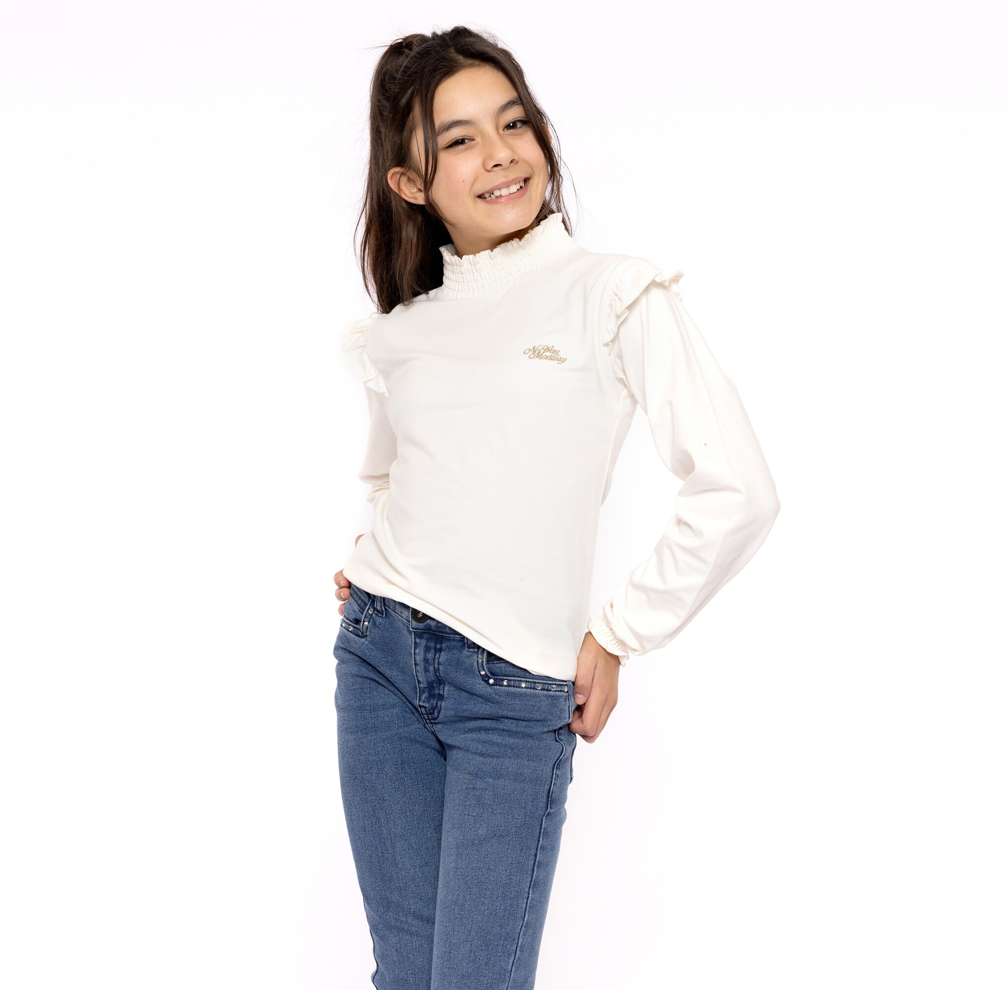 Een fijne basic om je kledingkast mee aan te vullen. De No Way Monday longsleeve is off white van kleur en gemaakt van een zachte katoen met stretch. Het shirt met lange mouwen is afgewerkt met mooie details zoals de ruffles aan de mouw en over de schouders en het mooie opstaande kraagje. Het meisjes shirt is perfect te combineren met andere items uit de No Way Monday collectie.