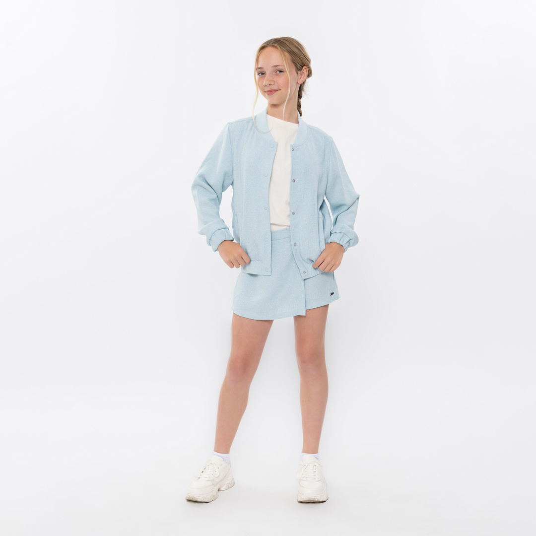 Deze No Way Monday zomerjas in turquoise is die ene jas die overal bij past. De stof met structuurtje maakt het jasje bijzonder en de zachte turquoise tint zorgt voor een frisse, zomerse uitstraling. De geribde boorden en drukknopen maken het praktisch én comfortabel. Deze meisjes tussenjas in bomberstijl is ideaal als licht zomerjasje maar ook leuk als setje, draag ‘m met de bijpassende skort en een T-shirt voor een complete look.