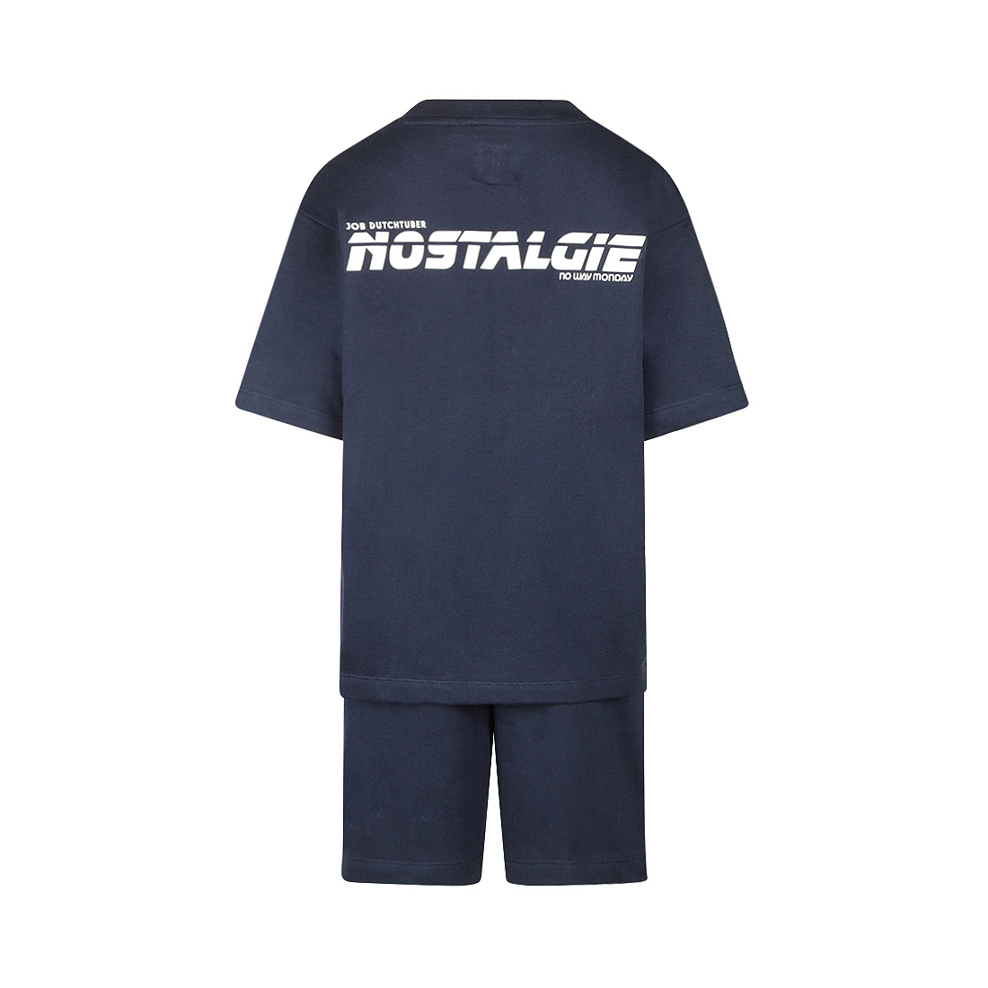Op de voorkant van het shirt met korte mouwen staat een kleine witte Job Dutchtuber print, terwijl de achterkant een stoere witte Nostalgie print laat zien. Ook op de shorts vind je een subtiele Nostalgie opdruk, wat de set helemaal compleet maakt. Comfortabel, stijlvol en 100% JOB Dutchtuber.