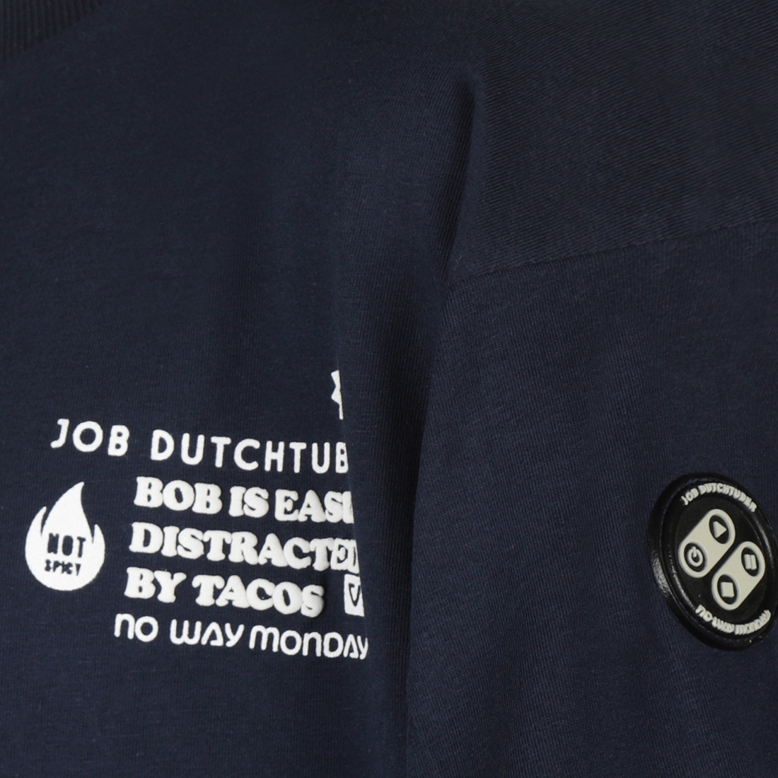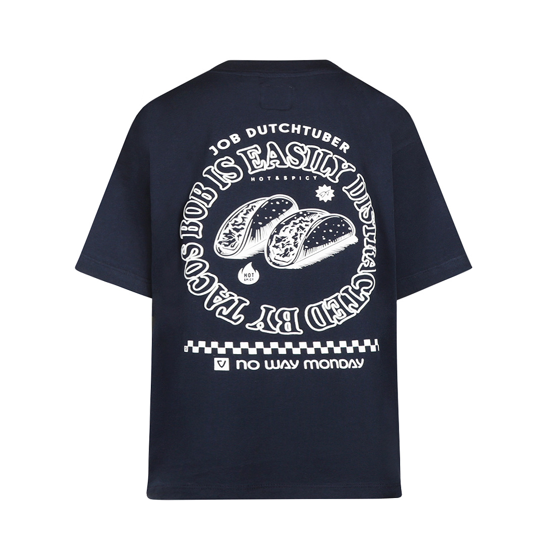 No Way Monday X JOB Dutchtuber T-shirt donkerblauw taco