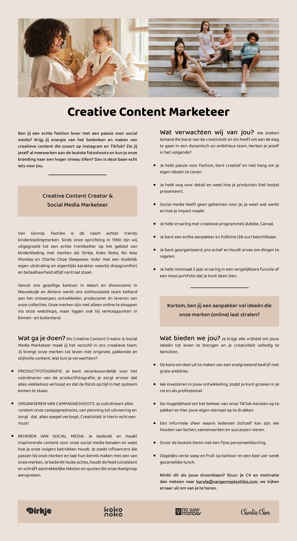 Op zoek naar een plekje in ons No Way Monday team? Bij No Way Monday werk je in een enthousiast en betrokken team. Word jij onze nieuwe collega? Dan kun je ook een open sollicitatie sturen naar [email protected]